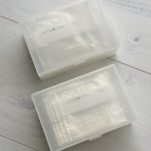 分包の薬剤名の印字に薬の量が記載されるようになっていました。無印のポリプロピレン小物ケースに、乾燥剤と一緒に入れて保管しています。