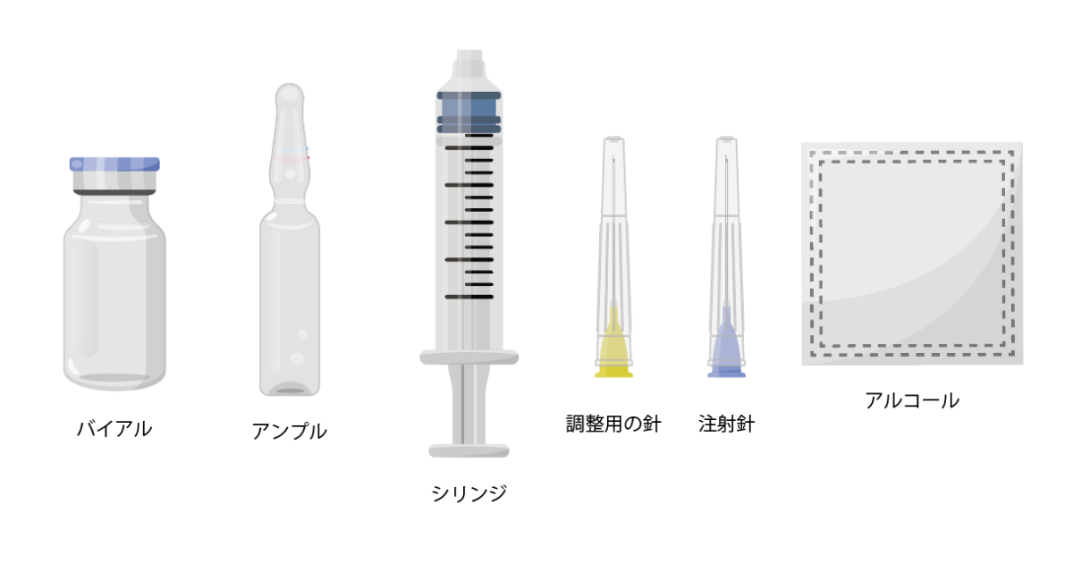 - バイアルのキャップを外してゴム栓をアルコール綿で拭く