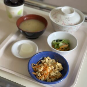 突然の入院だったにもかかわらず、小麦粉と乳製品を除いた病院食を用意していただきました。コートリルの服用と輸液のあとには食欲もすぐに戻り、美味しくいただくことができました。
